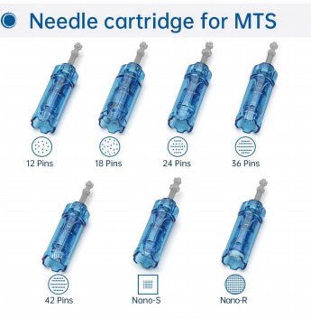 ★ 12, 18, and 24 Pin – These cartridges are ideal for improving acne scars, wrinkles, fine lines, melasma, rosacea, hyperpigmentation, and collagen induction.